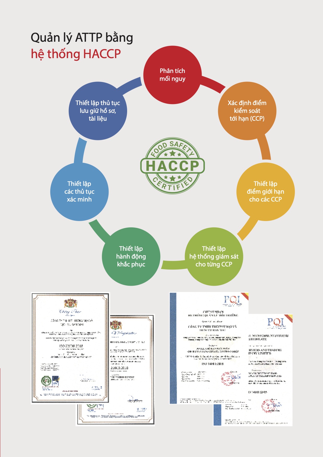 Nguồn thực phẩm đầu vào theo tiêu chuẩn VietGAP, GlobalGAP, có truy xuất nguồn gốc xuất xứ, được đánh giá và lựa chọn bởi các Cơ quan Quản lý Nhà nước (Sở Y tế, Uỷ ban Nhân dân, Phòng Giáo dục và Đào tạo các Quận/Huyện). Công ty đang vận hành hệ thống theo tiêu chuẩn Quốc tế ISO 22000 và ISO 14000